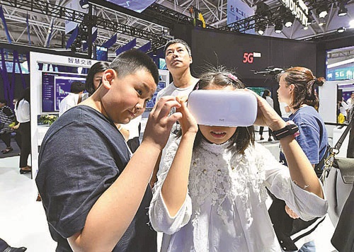 小朋友在体验VR设备。光明日报记者 邱玥摄/光明图片
