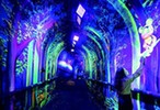 防空洞洞壁上绘制的荧光主题壁画美轮美奂。