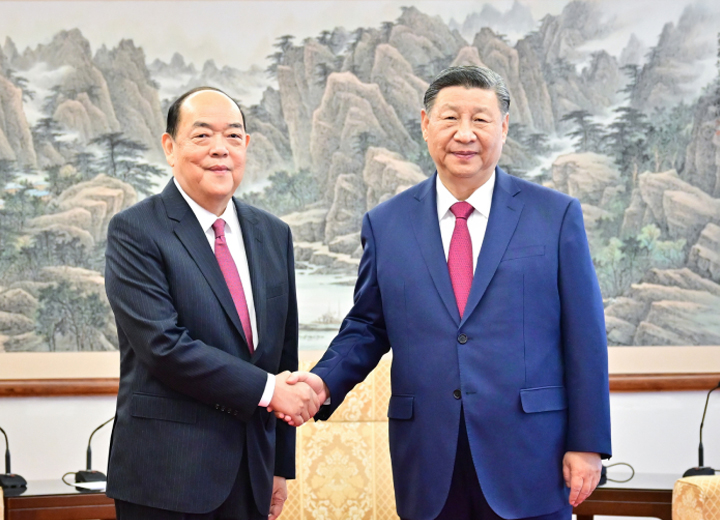 12月18日下午,国家主席习近平在澳门会见澳门特别行政区行政长官贺一诚。新华社记者 翟健岚摄