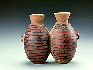 同饮一壶酒,携手永相亲。彩陶双连壶的双生双伴造型,是远古化干戈为玉帛的象征,更是流淌在我们基因里爱好和平、相敬相亲的品格写照。