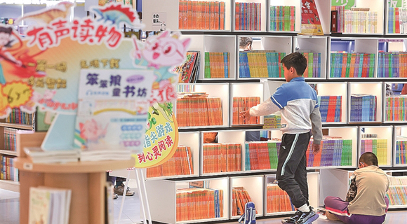 春光正好,风清景明。人们纷纷走出家门,以各种方式乐享周末时光。图为4月12日,小朋友在河北省石家庄书城选看儿童书籍。
